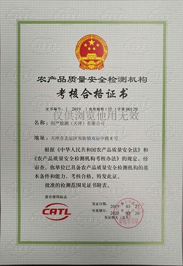 2019年03月底,創(chuàng)嚴檢測(天津)有限公司正式獲得由天津市市場監(jiān)督管理委員會頒發(fā)的檢驗檢測機構(gòu)資質(zhì)認定證書(CMA)和由天津市農(nóng)業(yè)農(nóng)村委員會頒發(fā)的農(nóng)產(chǎn)品質(zhì)量安全檢測機構(gòu)考核合格證書(CATL)?!?/p>