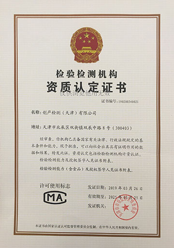 本次雙證書的取得,標(biāo)志著創(chuàng)嚴檢測(天津)有限公司的檢測水平、管理水平和服務(wù)水平得到了認證認可,具備了檢測報告的科學(xué)性和公信力。